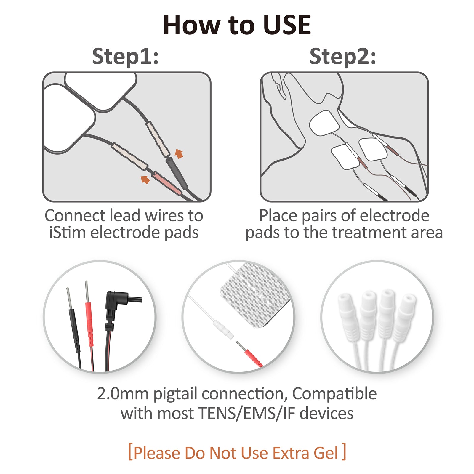 ✨UNIVERSAL COMPATIBILITY: iStim electrode pads use standard 2mm pigtail connectors which are widely compatible with most mainstream TENS units, EMS massagers, and muscle stimulators. iStim adhesive electrode pads are the best replacement accessories for your TENS/EMS device.
